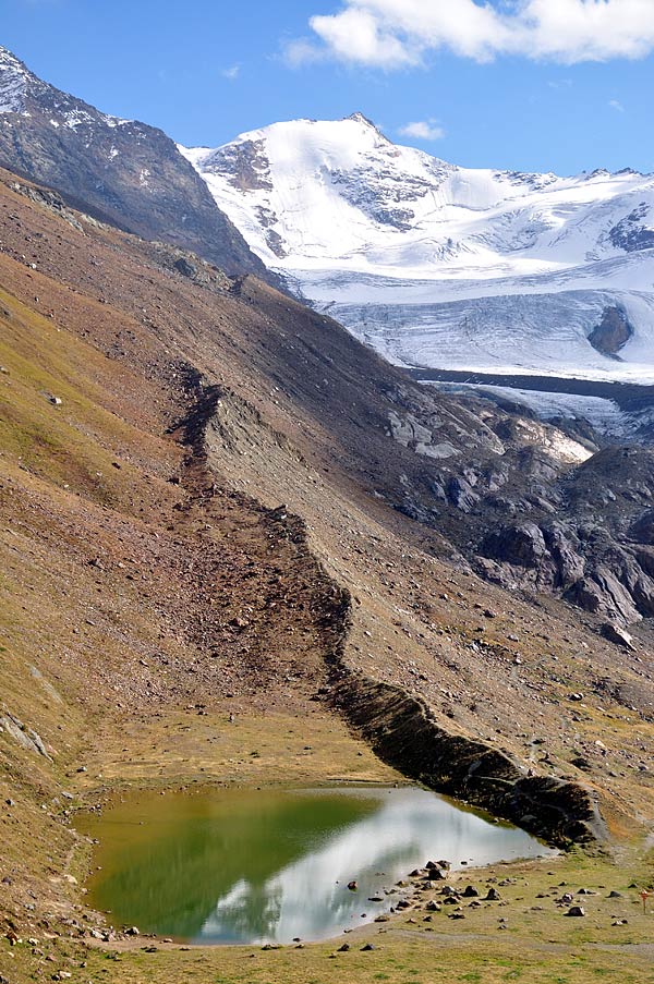 l'ambiente verdeggiante si mescola con la neve e i ghiacciai delle cime più